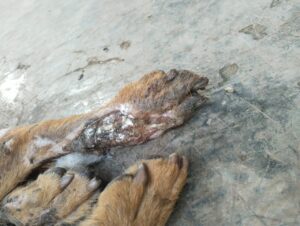 We received a call about an injured dog lying near St. Joseph’s. When we reached the spot, the sight was devastating.